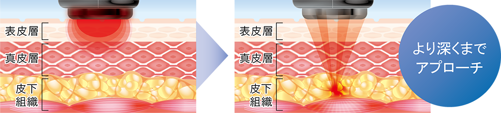 ラジオ波エネルギーのパワーが 様々な層まで深く浸透。